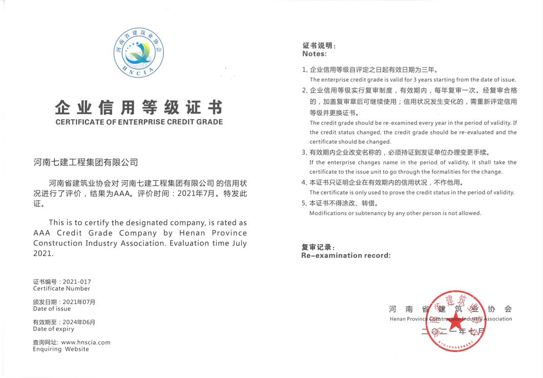 河南省AAA 企業(yè)信用等級證書2021-2024...